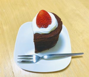 生クリームとイチゴで簡単にデコレーションしてバレンタインギフトとしてみんなで食べました。